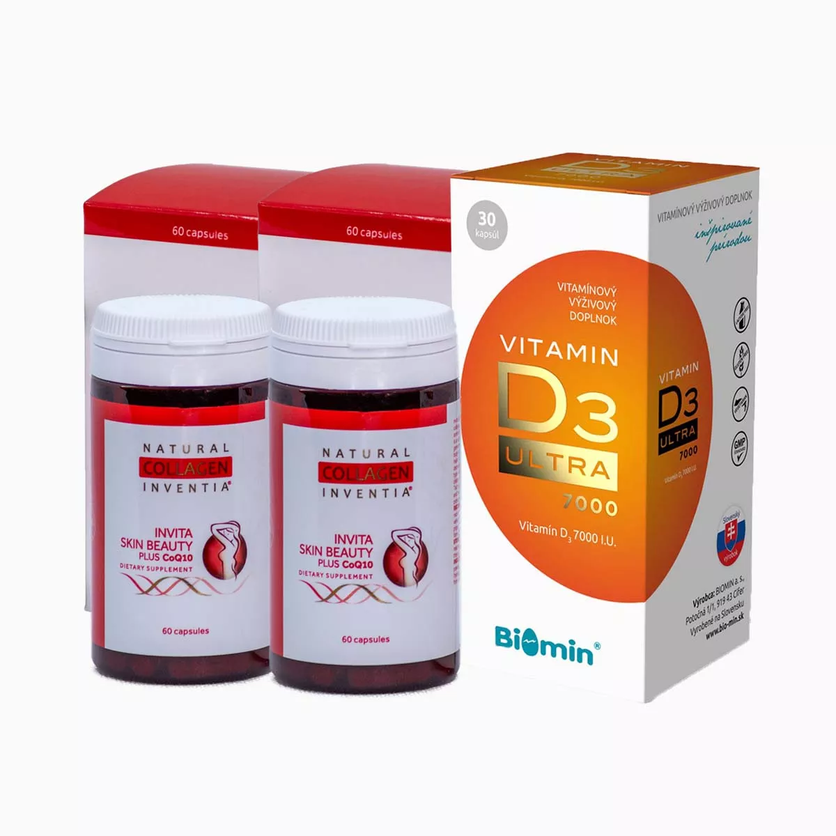 Balíček - OMLAZUJÍCÍ KOLAGENOVÁ KÚRA ISB na 2 měsíce a vitamin D3 ULTRA na 7 měsíců – balíček obsahuje 3 produkty: